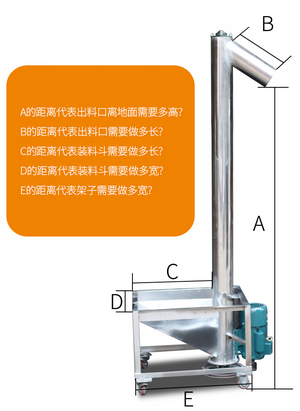 垂直螺旋輸送機(jī)的高度是指進(jìn)料口到出料口的距離,對(duì)于在高處或小筒倉(cāng)(8米高度差)中運(yùn)輸產(chǎn)品,當(dāng)需要增加提升高度時(shí),通常需要中間吊架或穩(wěn)定器軸承來(lái)消除過(guò)度的螺旋偏轉(zhuǎn)。